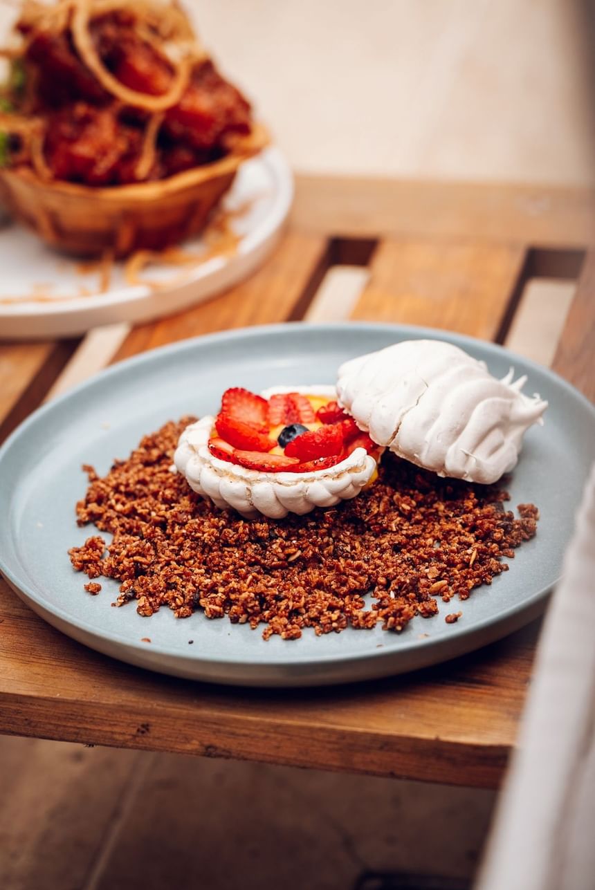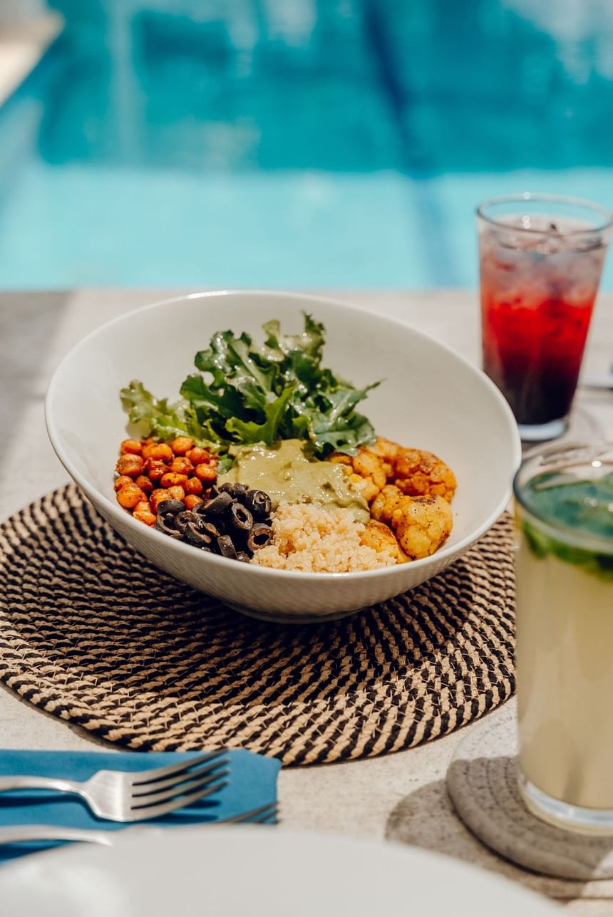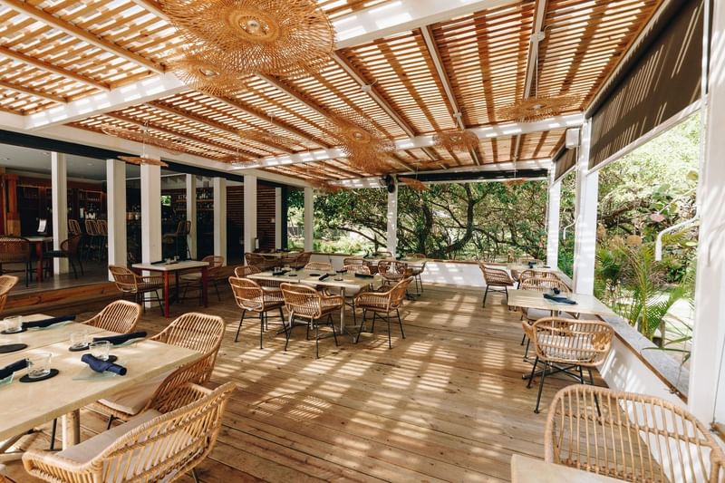 Situado junto a la piscina y rodeado de jardines tropicales, el entorno al aire libre de Azure invita a los huéspedes a relajarse y disfrutar de cada bocado. El ambiente es refinado pero sin pretensiones, realzado por un servicio atento y un enfoque en la hospitalidad genuina.