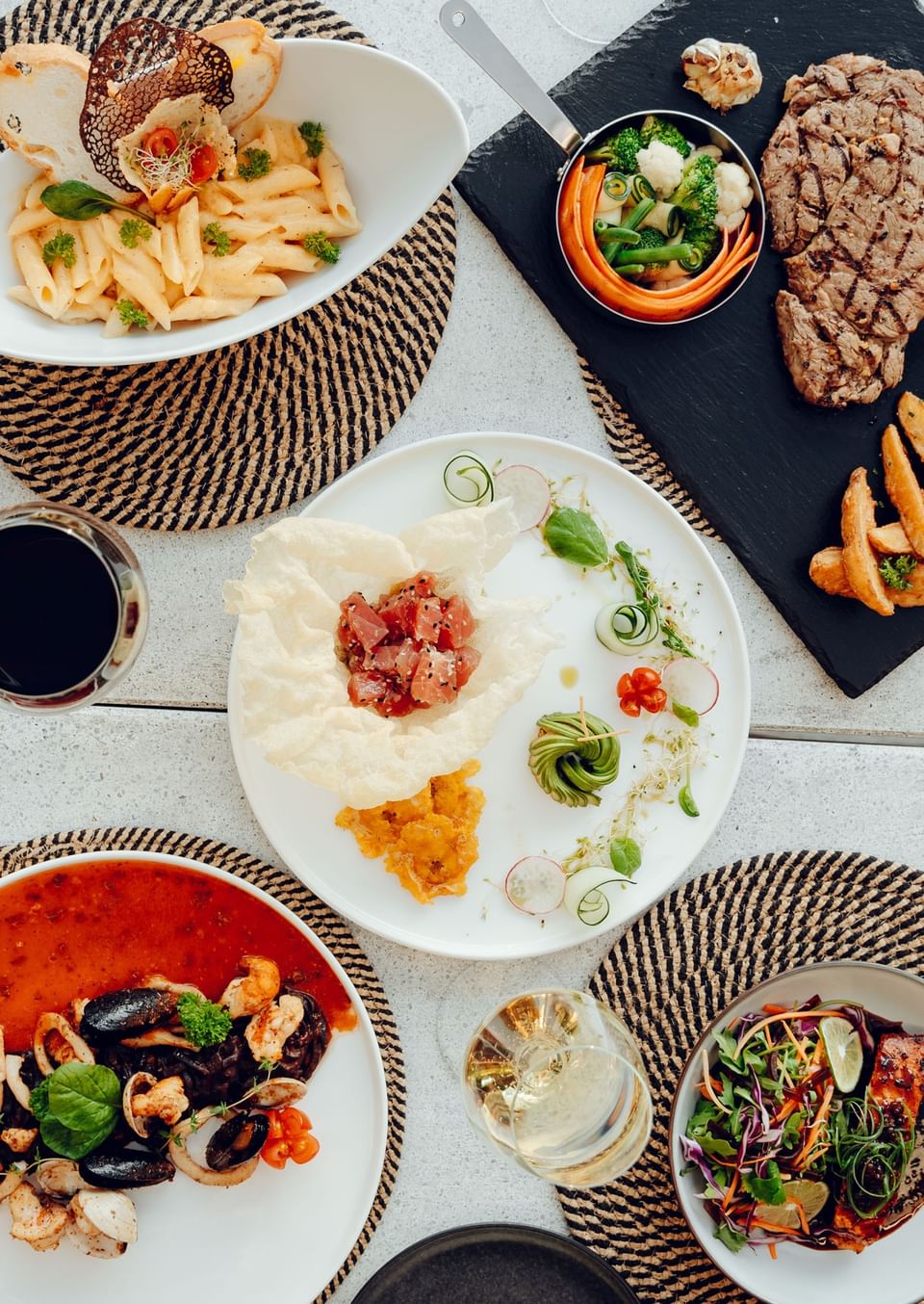 Durante toda la semana, Azure aporta variedad e imaginación a la mesa. Los martes, el Osteria Day celebra la cocina fusión italiana con pasta casera y sabores mediterráneos. Los viernes ofrecemos nuestra experiencia Anti-Fine Dining durante todo el día, con un toque divertido en pizzas, tacos, ramen y costillas, inspirada en la comida callejera internacional y reinterpretada con el estilo informal y elegante de Barefoot Cay. Los domingos están reservados para el brunch, una comida tranquila repleta de los platos favoritos de la isla y de ingredientes frescos locales, servidos en un ambiente de sofisticación relajada.