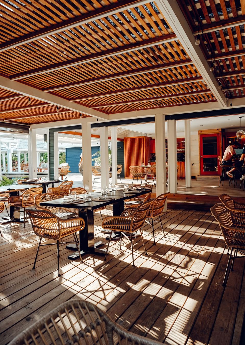 Ya sea junto a la piscina o bajo las estrellas, Azure captura la esencia de Barefoot Cay, donde cada comida es íntima, sabrosa e inolvidable.