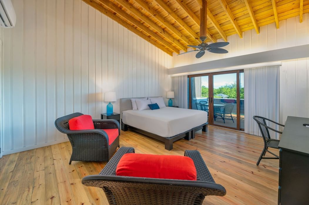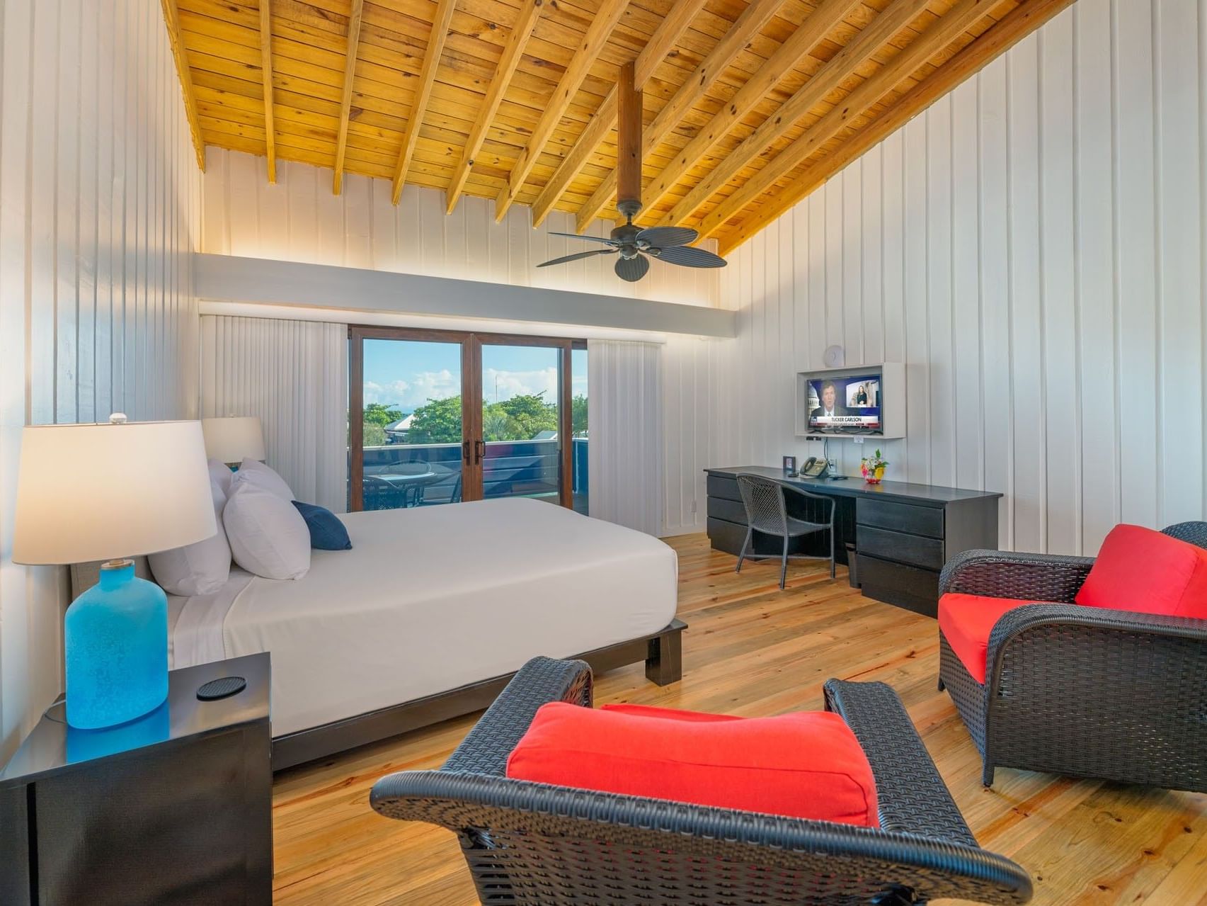 A tranquil retreat with sweeping views of the Caribbean Sea, perfect for solo travelers or couples. The open-plan layout includes a King Heavenly Bed, full kitchen, and sliding glass doors leading to a furnished ocean view balcony, ideal for morning coffee or sunset cocktails.